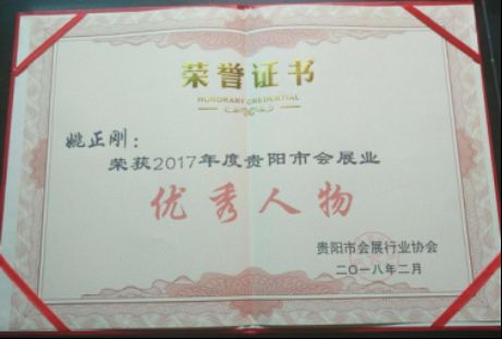 為鼓勵(lì)先進(jìn),進(jìn)一步促進(jìn)貴陽市會(huì)展行業(yè)健康發(fā)展,本次會(huì)議評(píng)選出了為貴陽市會(huì)展業(yè)做出突出貢獻(xiàn)的“會(huì)展業(yè)優(yōu)秀企業(yè)”和“會(huì)展業(yè)優(yōu)秀人物”??撇┕疽慌e榮獲兩項(xiàng)殊榮,公司姚正剛總經(jīng)理榮獲“2017年度貴陽市會(huì)展業(yè)優(yōu)秀人物”,貴州科博展覽廣告有限公司榮獲“2017年度貴陽市優(yōu)秀會(huì)展企業(yè)”。